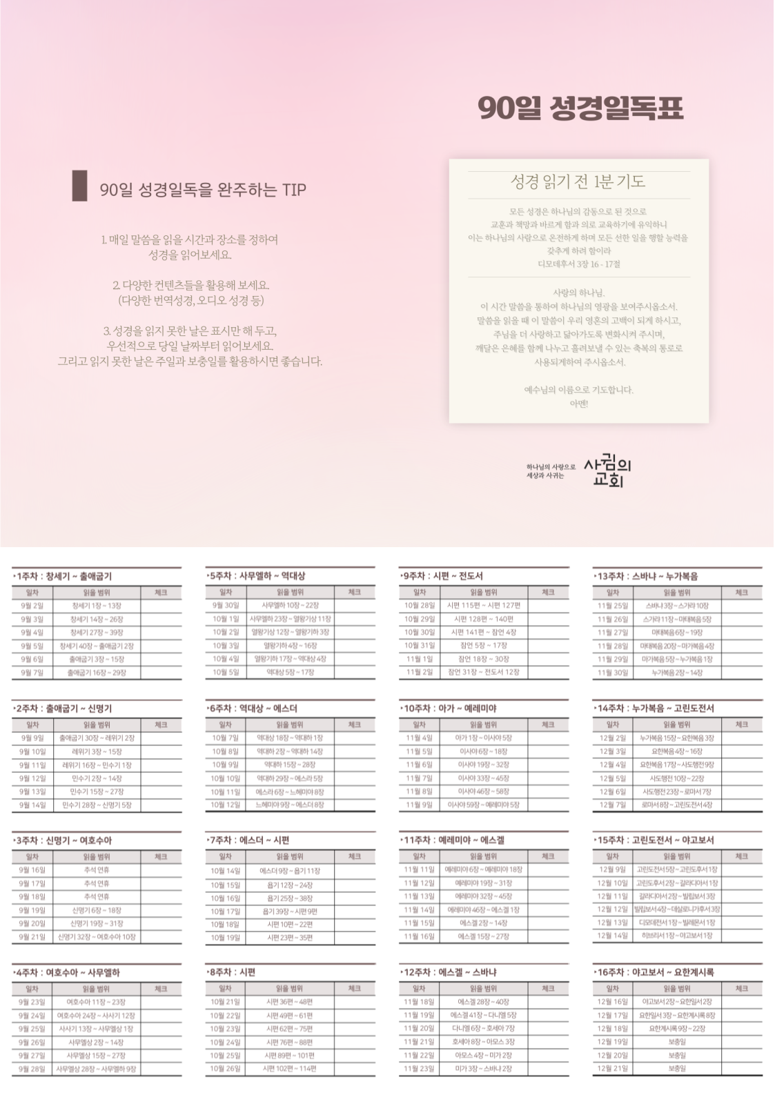 2024년 성경일독 90일 챌린지 4차 통독표