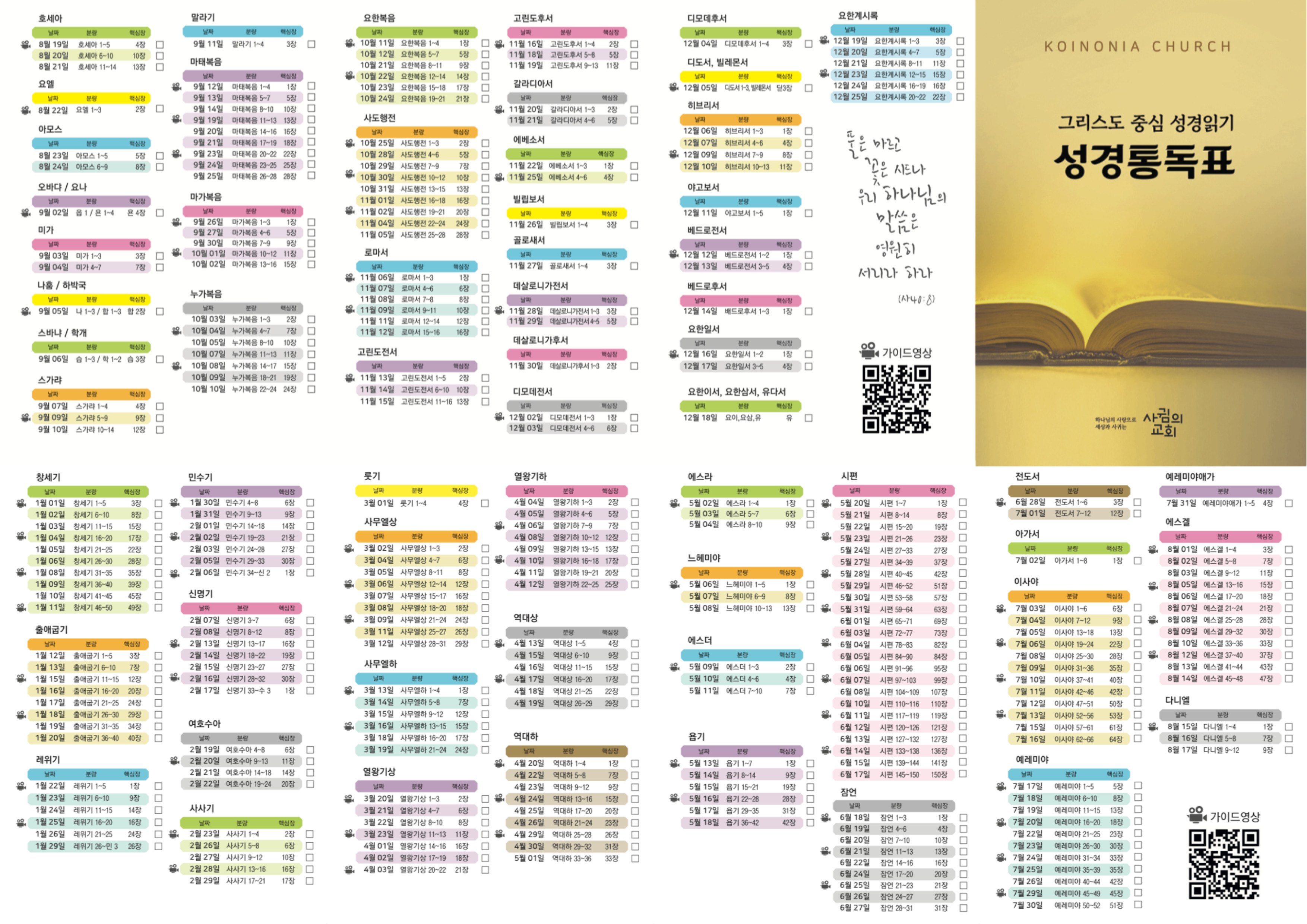 2024년 사귐의교회 1년 성경읽기표