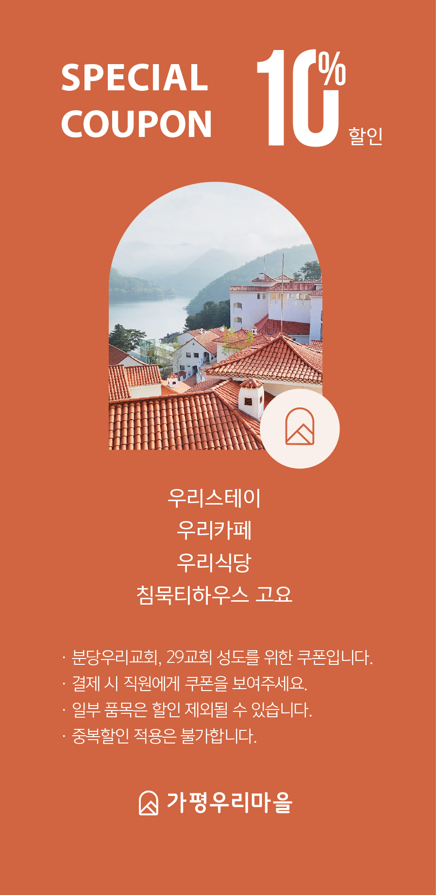 ※ 할인쿠폰은 로비에 비치되어 있으며, 이미지는 교회 홈페이지에서 다운가능합니다.