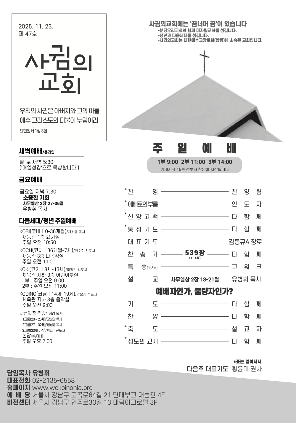 예배시간 안내